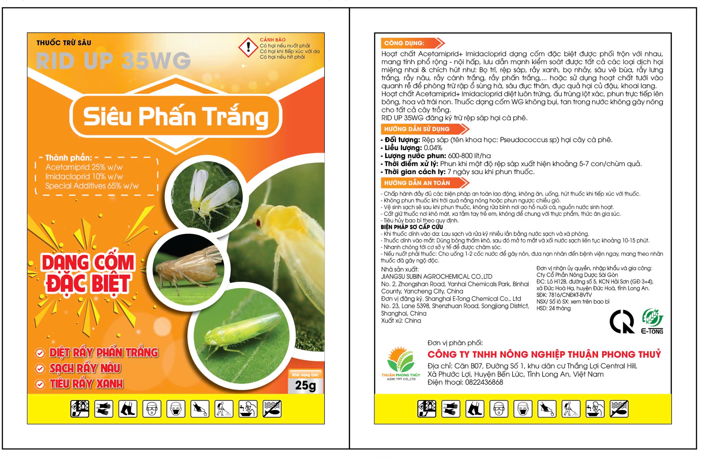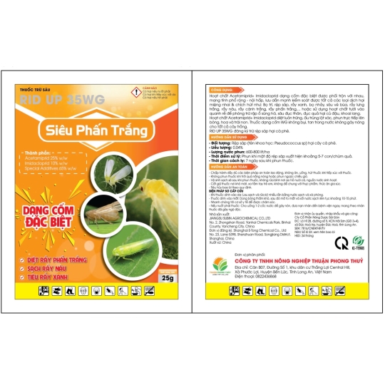 SIÊU PHẤN TRẮNG 35WG là một sản phẩm thuốc trừ sâu tiên tiến. Thuốc là sự kết hợp giữa hai hoạt chất chính là Acetamiprid (250g/kg) và Imidacloprid (100g/kg). Với công thức đặc biệt này, RID UP 35WG mang lại hiệu quả cao trong việc kiểm soát sâu và côn trùng gây hại trên nhiều loại cây trồng khác nhau